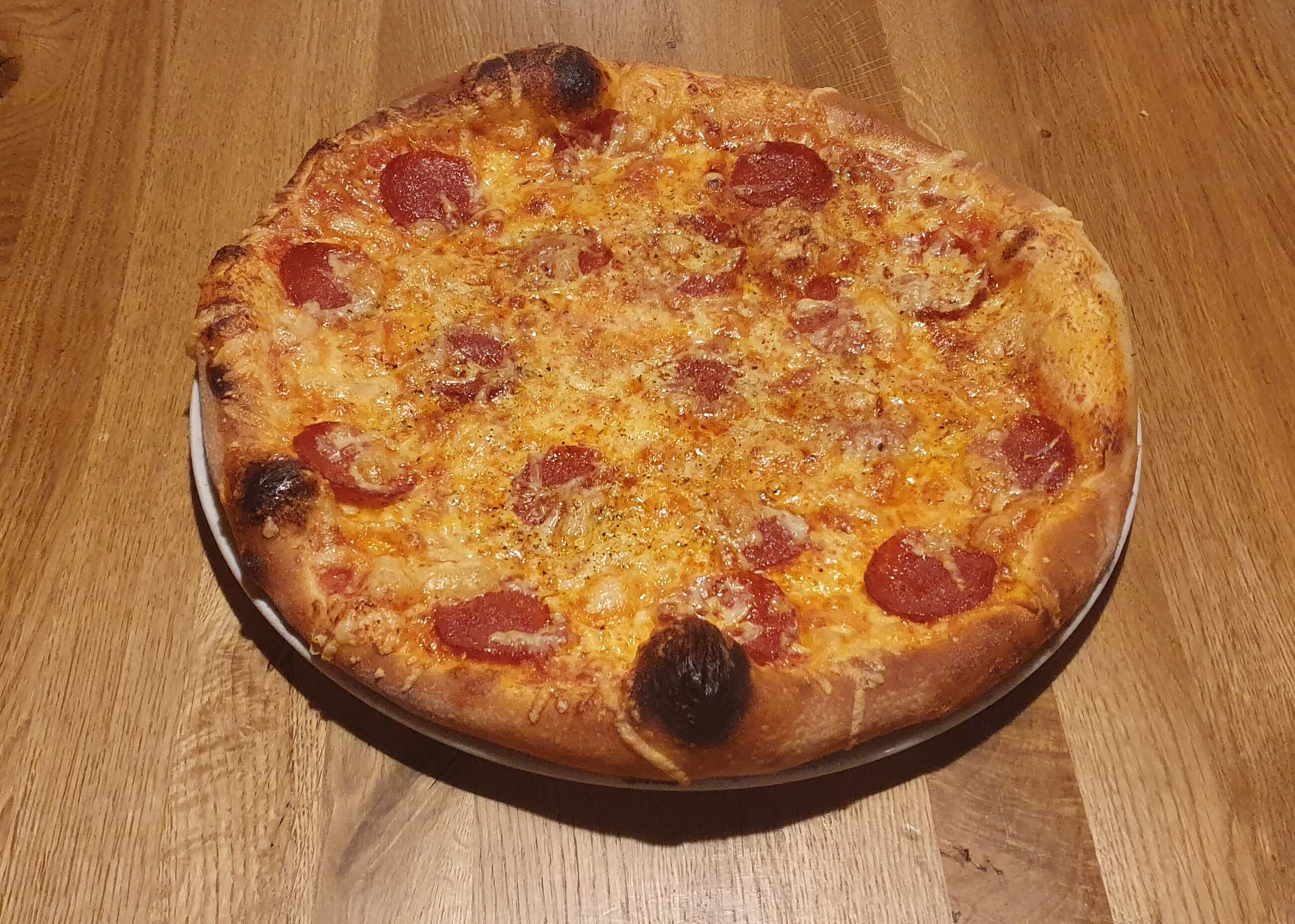 paradajkový základ, syr, pikantná saláma, ementáler